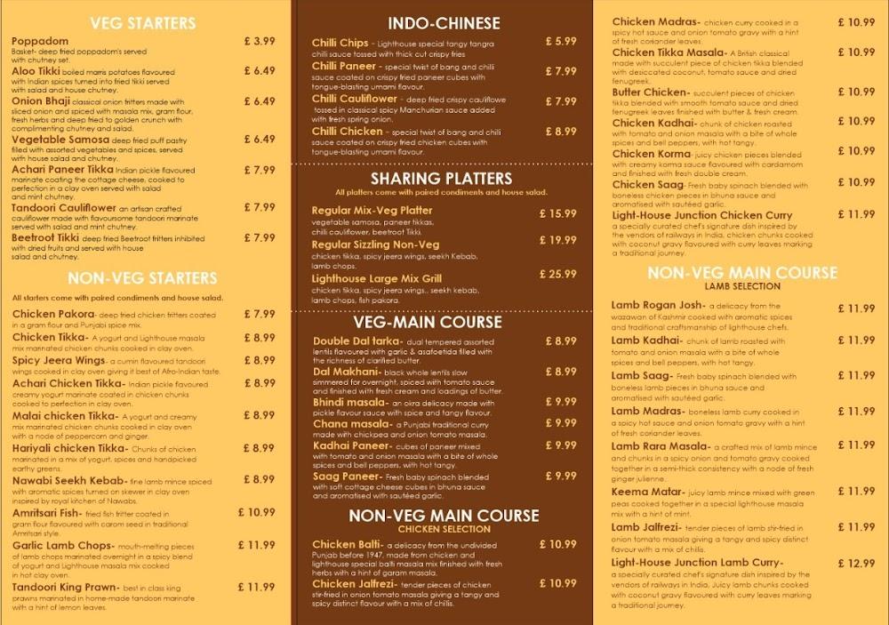 The Lighthouse Bar & Grill boasts a robust menu filled with a mix of traditional and contemporary Indian dishes. It features categories that cater to various tastes, with an impressive lineup of vegetarian and non-vegetarian options. The appetizers are well-loved, particularly the chicken pakora and achari paneer tikka, which entice guests with their flavors before diving into heartier main courses.